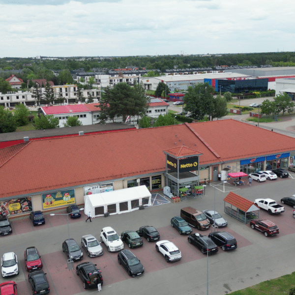 Park handlowy wybudowany przez naszą firmę, w którym funkcjonują popularne sieci handlowe Netto i Pepco.